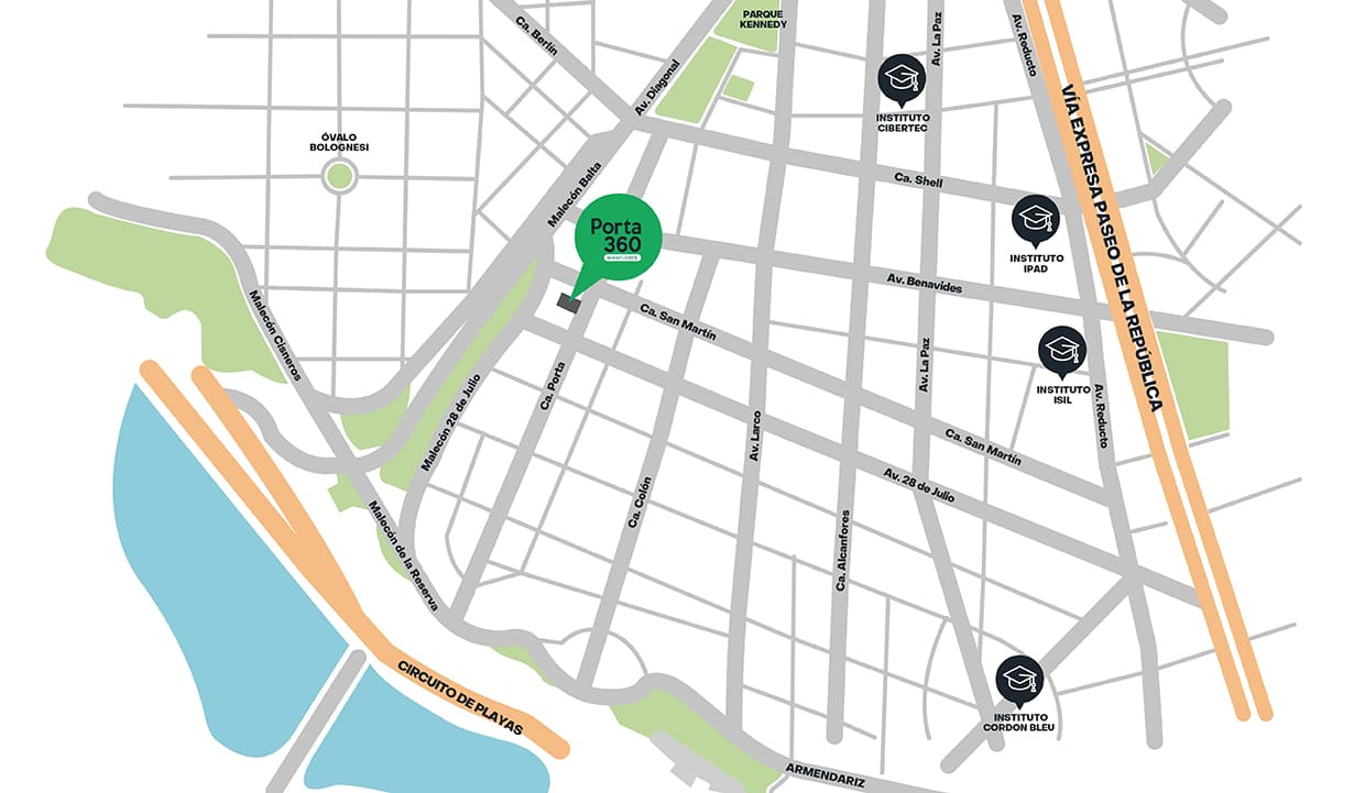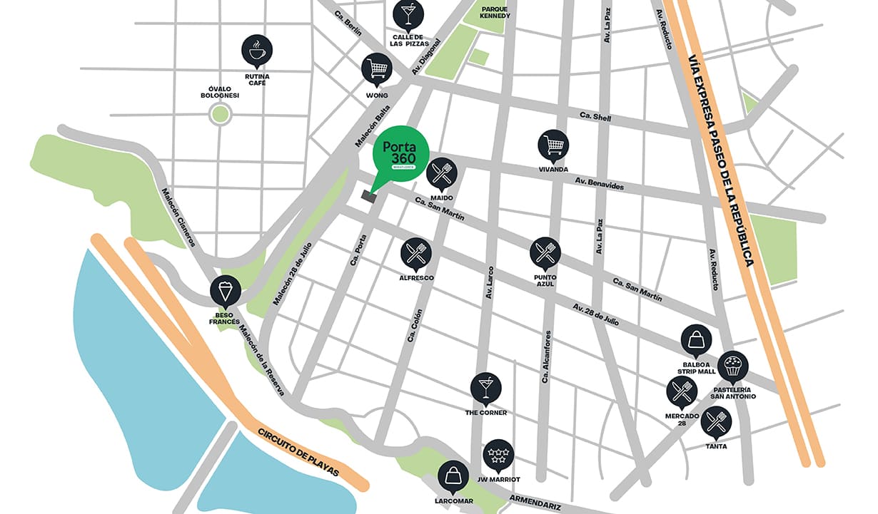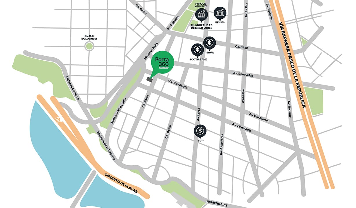 Porta 360 te ofrece departamentos de 2 y 3 ambientes, diseñados con una distribución óptima para tu bienestar y el de tu familia. Disfruta de exclusivas áreas comunes que hacen tu vida más cómoda sin salir de casa, mientras estás a pocos minutos del Malecón de la Reserva, en la zona más céntrica y turística de Miraflores. Vive la experiencia de Porta 360 y empieza el cambio hoy.